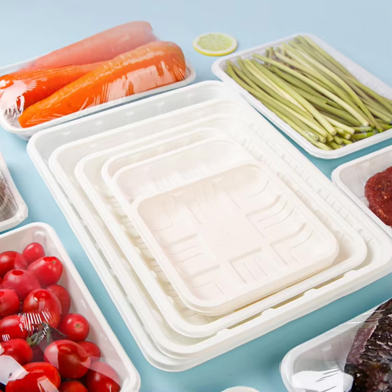 25*20*3mmНаш Прямоугольный Биоразлагаемые лотки из PLA Разработаны для современных супермаркетов и поставщиков продуктов питания, которые уделяют первостепенное внимание устойчивому развитию без ущерба для производительности. Изготовленные из передовой полимолочной кислоты (PLA), получаемой из возобновляемых ресурсов, таких как кукурузный крахмал, эти лотки представляют собой полностью компостируемую альтернативу традиционной пластиковой упаковке на основе нефтепродуктов. Они специально разработаны для сохранения свежести и товарного вида широкого спектра продуктов, включая свежее мясо, птицу, морепродукты, фрукты, овощи и готовые к употреблению блюда.