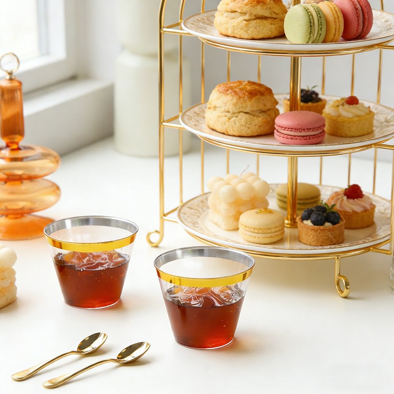 Элегантный дизайн с золотой окантовкойПрозрачный корпус с блестящей золотой окантовкой, стильный и изысканный внешний вид, идеально подходящий для сервировки стола на свадьбах, вечеринках и торжественных мероприятиях.