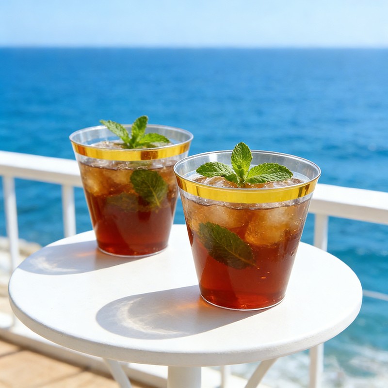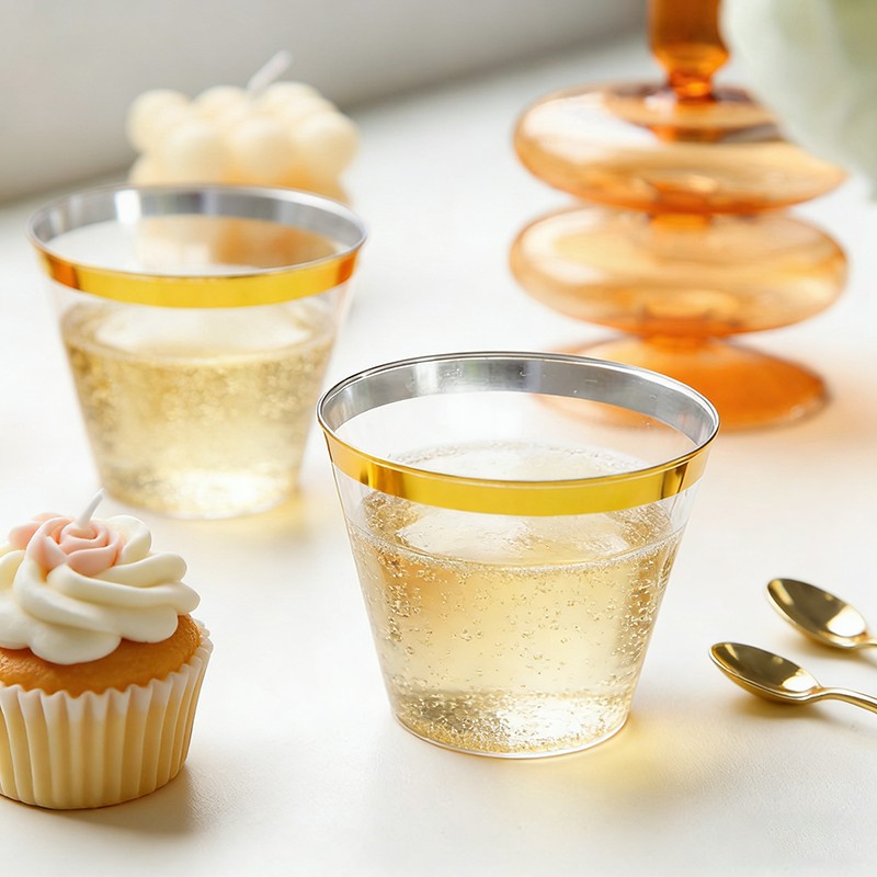 clear cup + gold rimВысококачественный прочный материалИзготовлен из пищевого прозрачного пластика, не содержащего BPA; прочный, устойчивый к трещинам и протеканию, идеально подходит для холодных напитков, коктейлей, вина, газировки и других напитков.