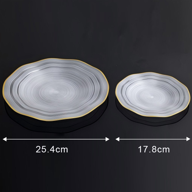 17.8 cm, 25.4 cmEye-Catching Wave Stripe & Gold Rim Design: The unique wave stripe pattern adds texture and visual depth, while the food-safe metallic gold rim elevates any table setting—infusing luxury into weddings, bridal showers, holiday feasts, or corporate galas.