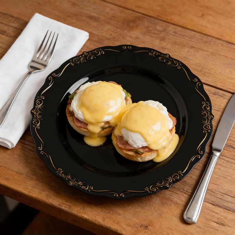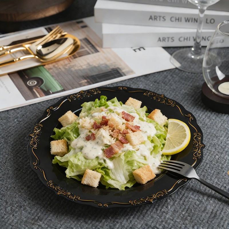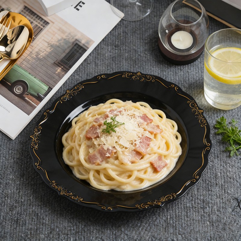 Классическое черное основание в сочетании с блестящей золотой отделкой дополнит любой столовый сервиз, цветочную композицию или любой стиль оформления — от современных минималистичных свадеб до традиционных гала-вечеров в королевском стиле. Эти тарелки также идеально подойдут для тематических вечеринок, новогодних ужинов и празднования годовщин.