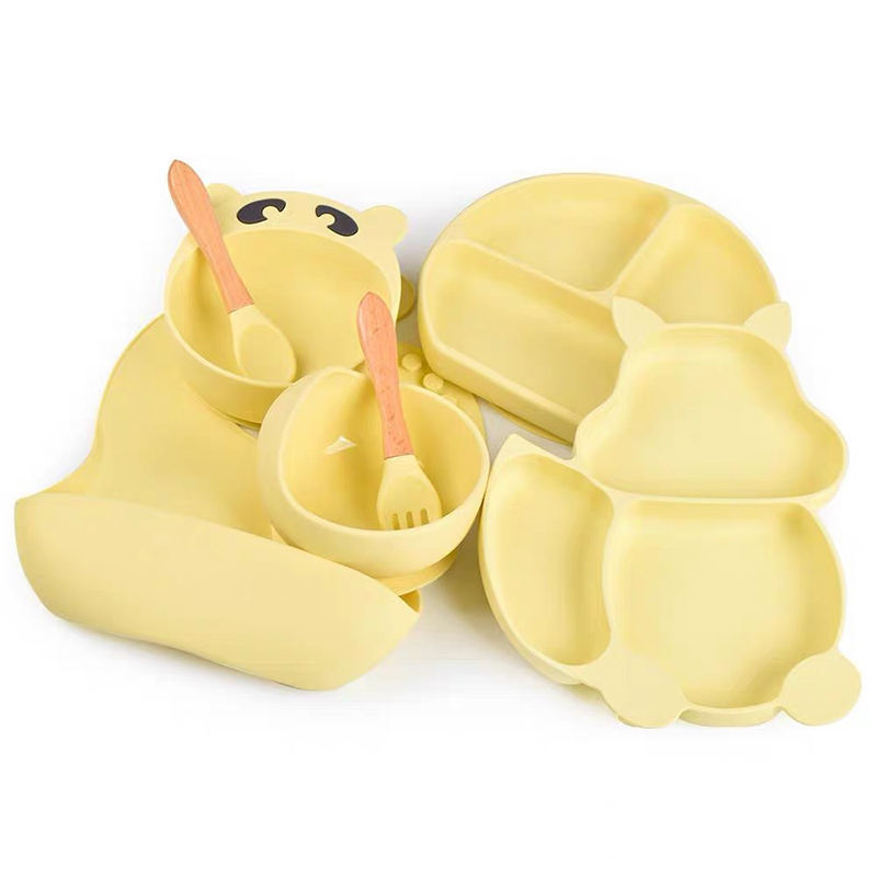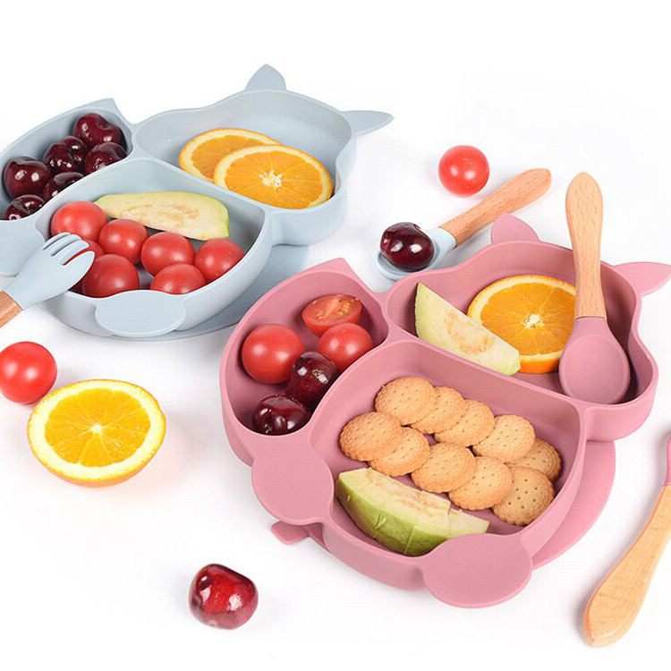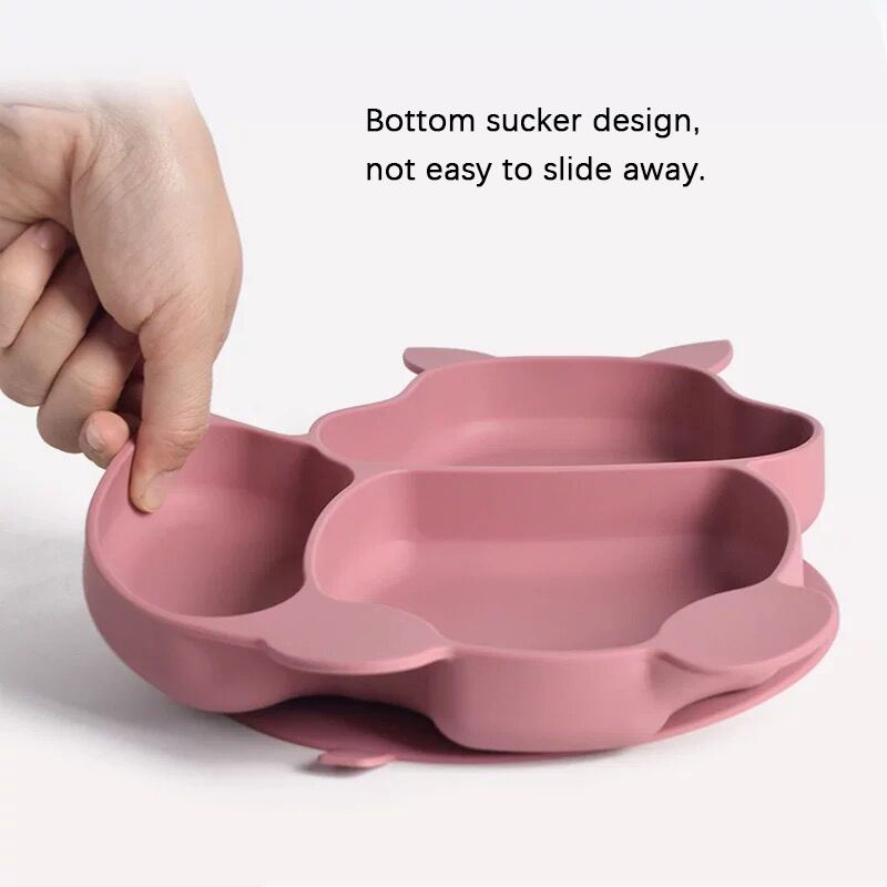 CustomizedНескользящая силиконовая пластина: центральный элемент набора с очаровательной мордочкой лисы и мощной присоской, которая крепится к подносам и столам, значительно уменьшая беспорядок.