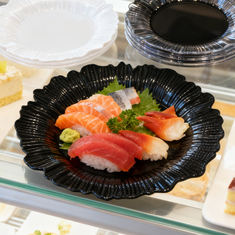 18.5cm, 25cmTransparent Decorative Design: The semi-transparent or clear base showcases the colors and textures of your food (ideal for fruit platters, colorful salads, or layered desserts), while the colored accents add a decorative touch that enhances table aesthetics. Perfect for photo-worthy moments and social media-ready spreads.
