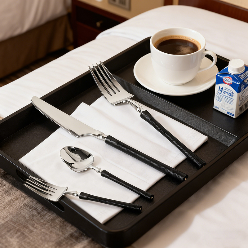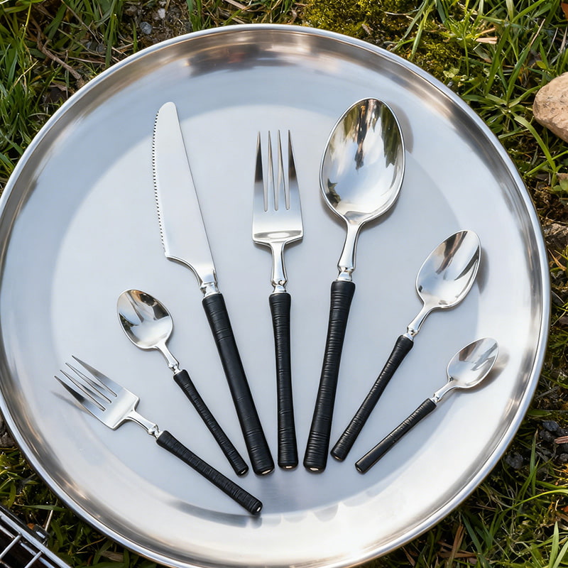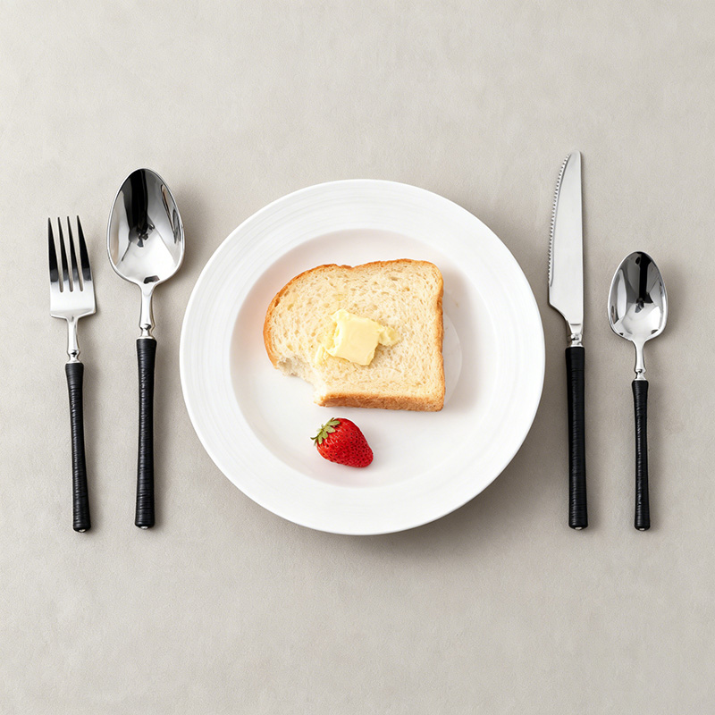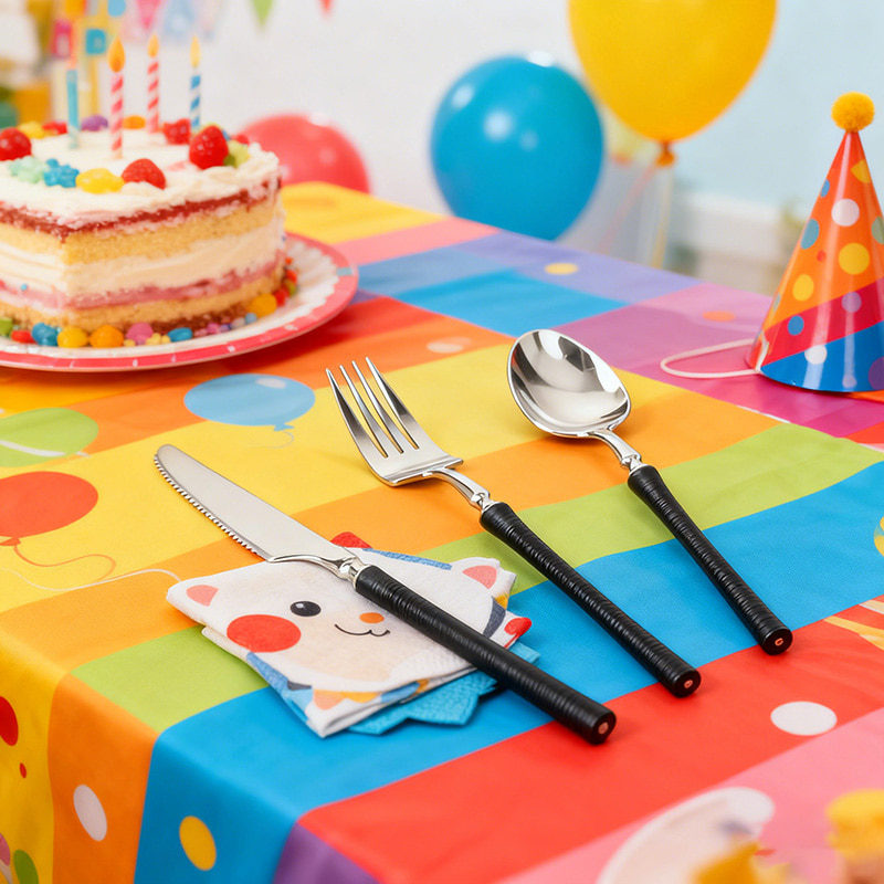 Практичный функциональный дизайн: Нож без труда нарезает мясо, торты и закуски; вилка надежно нанизывает салаты и небольшие порции лакомств; ложка плавно зачерпывает супы, соусы и десерты — подходит для любых мероприятий и банкетов.